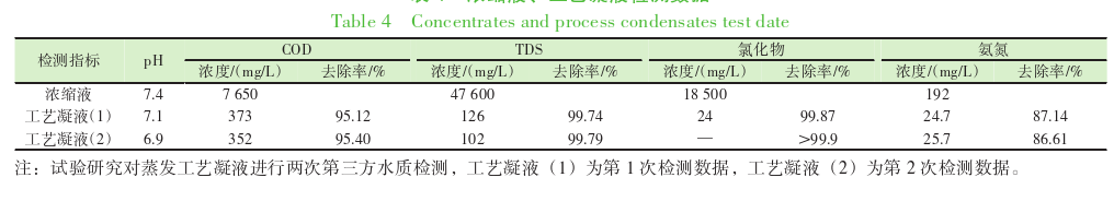 发装置工艺对浓缩液污染物具有很高的去除率, 工艺凝液污染物指标稳定。